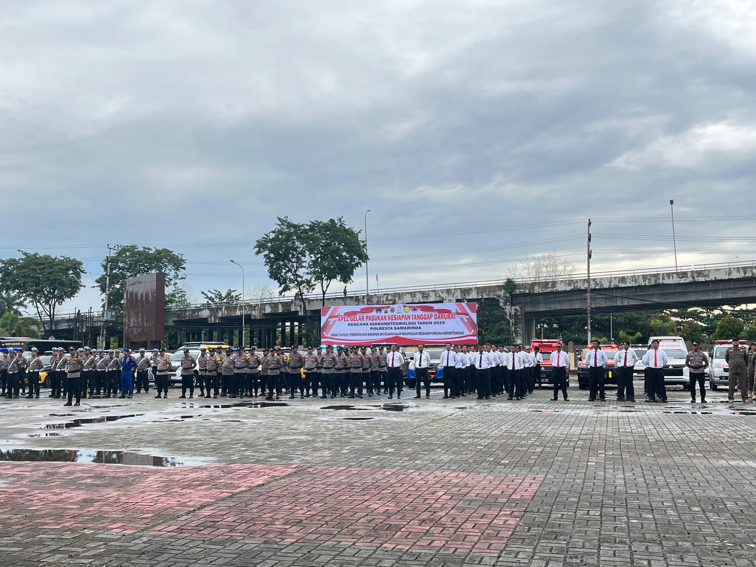 Ket. foto: Apel Kesiapsiagaan Tanggap Bencana Hidrometeorologi di Lapangan Mako Polresta Samarinda, Rabu (5/11/2025).